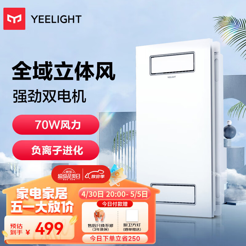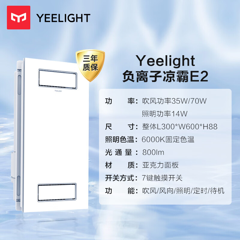 Yeelight易来凉霸厨房遥控冷霸集成吊顶吹风扇吸顶嵌入式卫生间吊扇凉霸E2价格:749.00元!