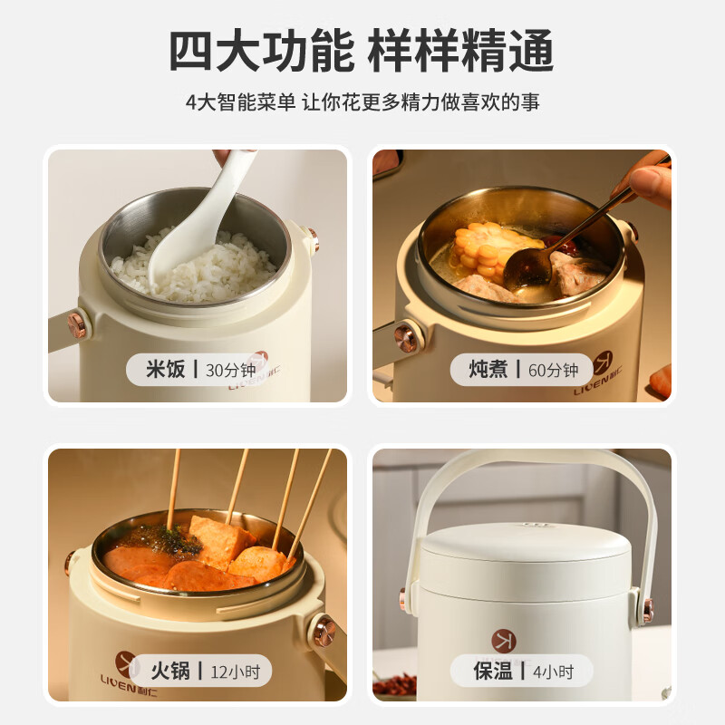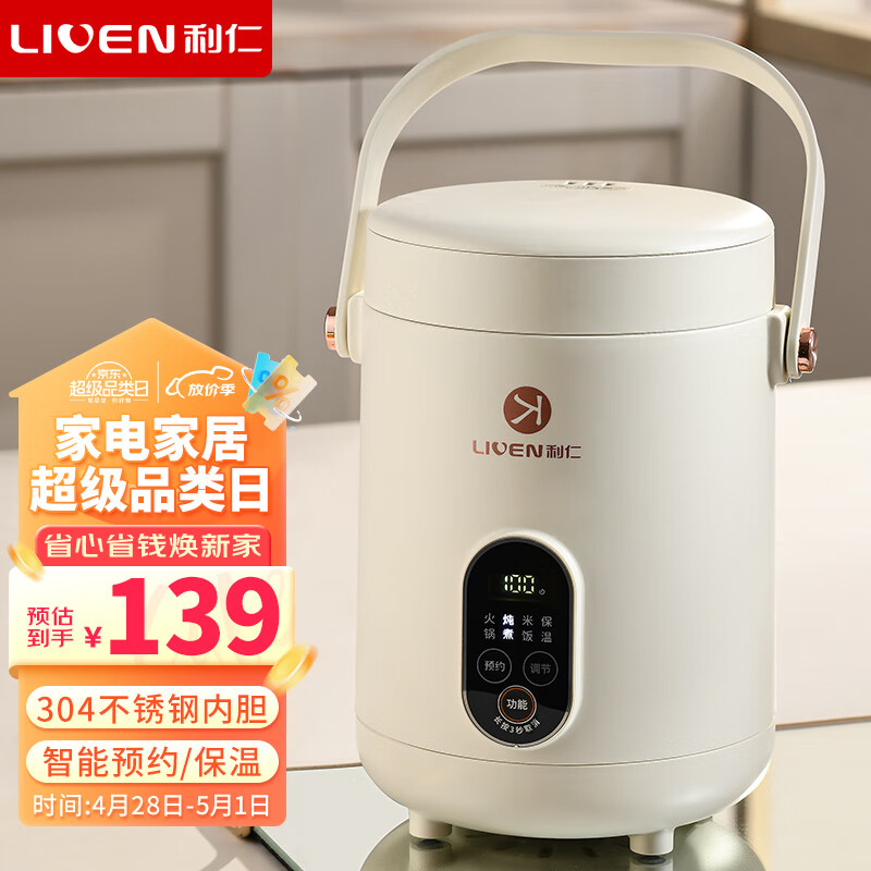 利仁(Liven)电炖锅 电煮锅宿舍煮面锅 电火锅 小电锅泡面锅煮粥神器 便携保温电炖杯 多功能电热锅 DDG-D1216价格:139.00元!