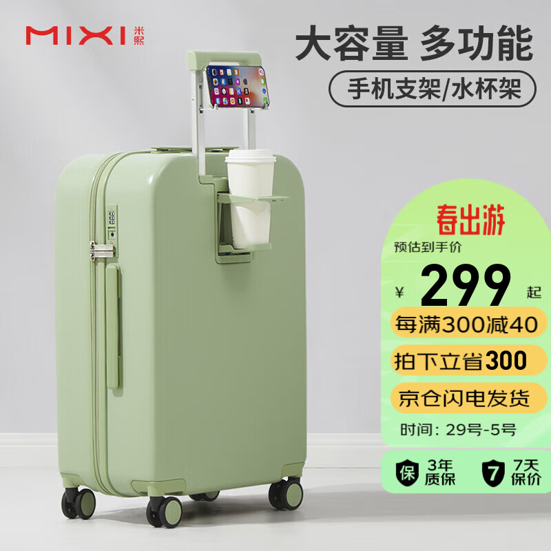 米熙多功能拉杆箱子行李箱大容量男高颜值旅行箱包女密码箱22英寸Max价格:599.00元!