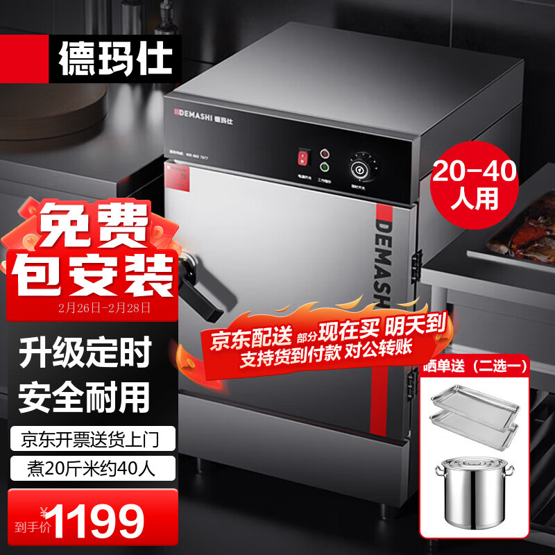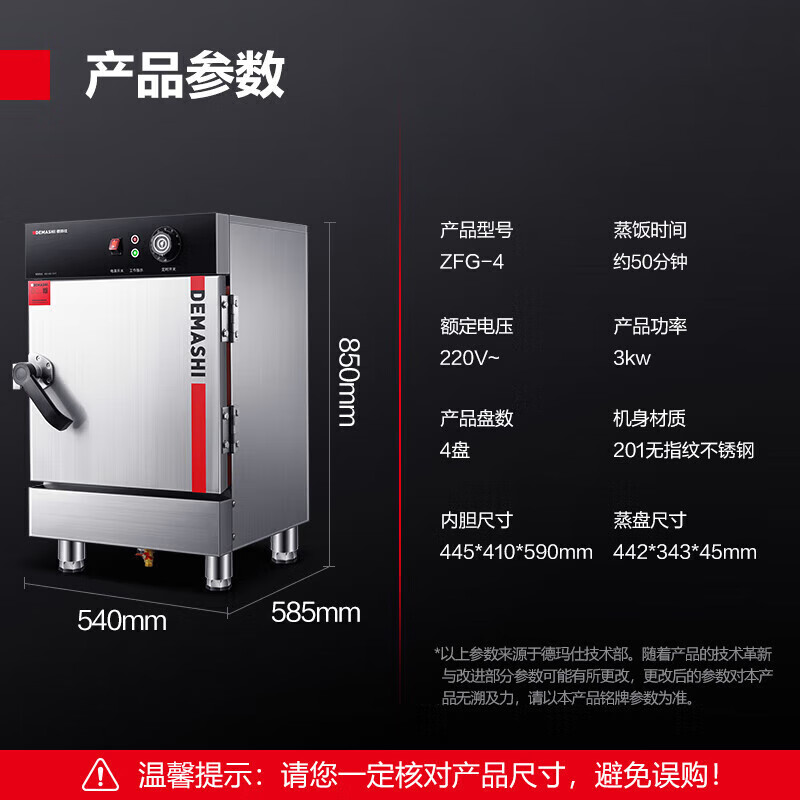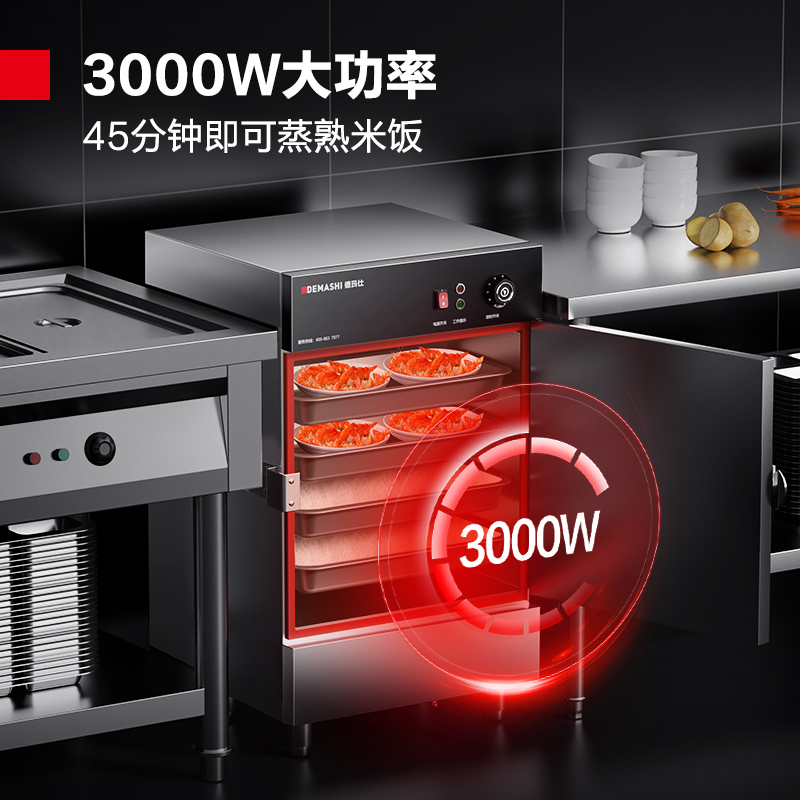 德玛仕商用蒸饭柜商用蒸箱蒸饭车蒸炉蒸饭机食堂蒸箱小型蒸饭器食堂酒店餐厅蒸菜工厂单位学校饭堂防干烧 中4盘定时20-40人有孔无孔各一半价格:1399.00元!