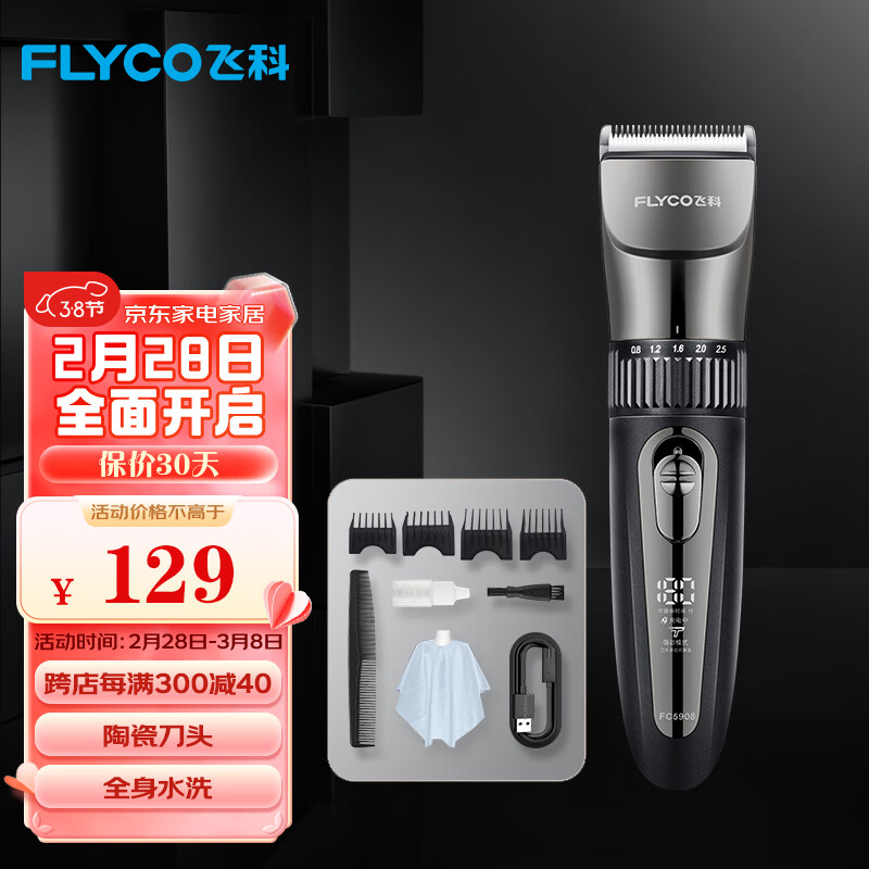 飞科(FLYCO) 理发器电动智能成人儿童婴儿电推剪剃头刀电推子造型器美发专用全套工具FC5908 专业家庭版【充插两用 配理发工具套装】价格:129.00元!