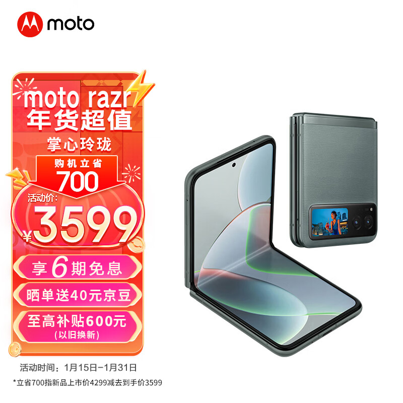 摩托罗拉 moto razr 40 掌心玲珑 自由悬停 旗舰影像 超长续航 双卡双待双5G 折叠屏手机 8GB+256GB 天青灰价格:3699.00元!