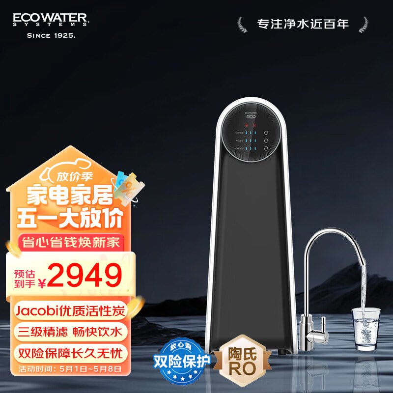 怡口净水(ECOWATER)净水器家用500G厨下直饮RO反渗透精滤KX压缩活性炭提升口感纤薄小巧节省空间1级水效ERO252-3价格:2845.50元!