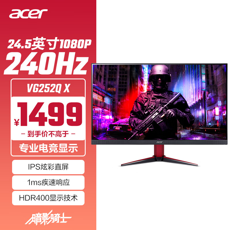 宏碁(Acer) 暗影骑士24.5英寸FastIPS+HDR400+240Hz+G-sync电竞显示器(双HDMI+DP)VG252Q X价格:1499.00元!