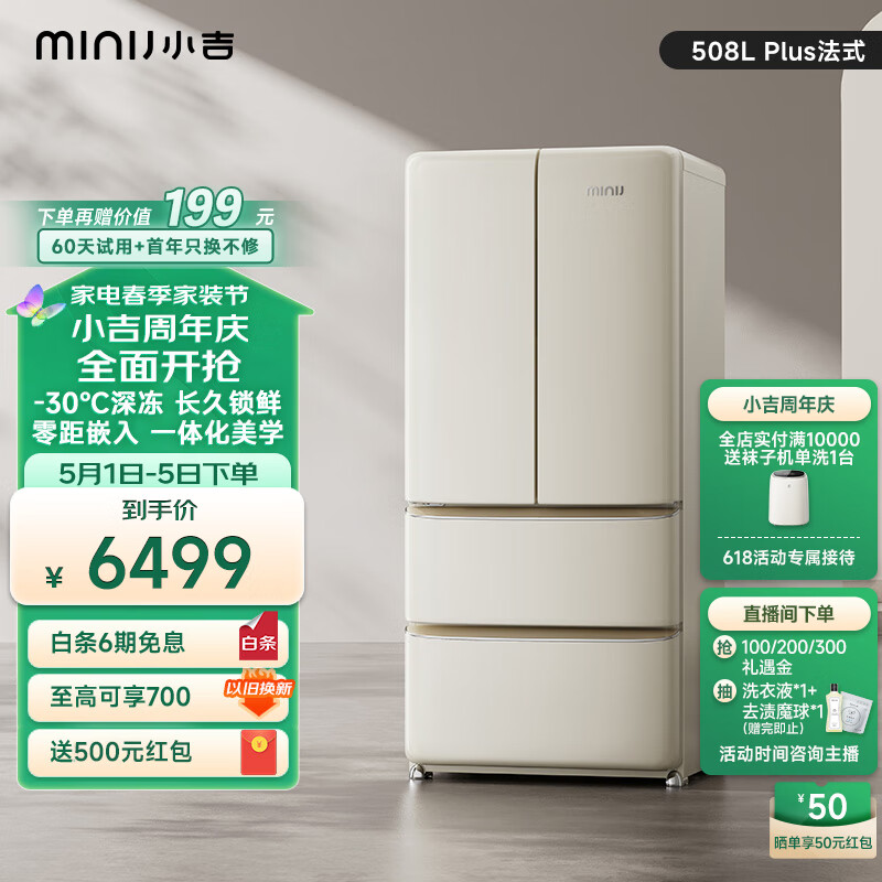 小吉(MINIJ)法式508L Plus超薄零嵌双变频一级能效法式多门家用客厅冰箱丨干湿分储变温低噪丨BCD-508WB Plus价格:6619.00元!
