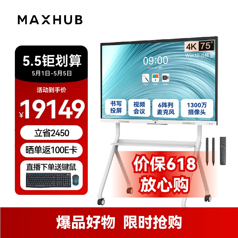 maxhub视频会议平板一体机教学智慧屏摄像头麦克风触摸屏白板新锐Pro75 Win10+时尚支架+遥控器价格:19149.00元!