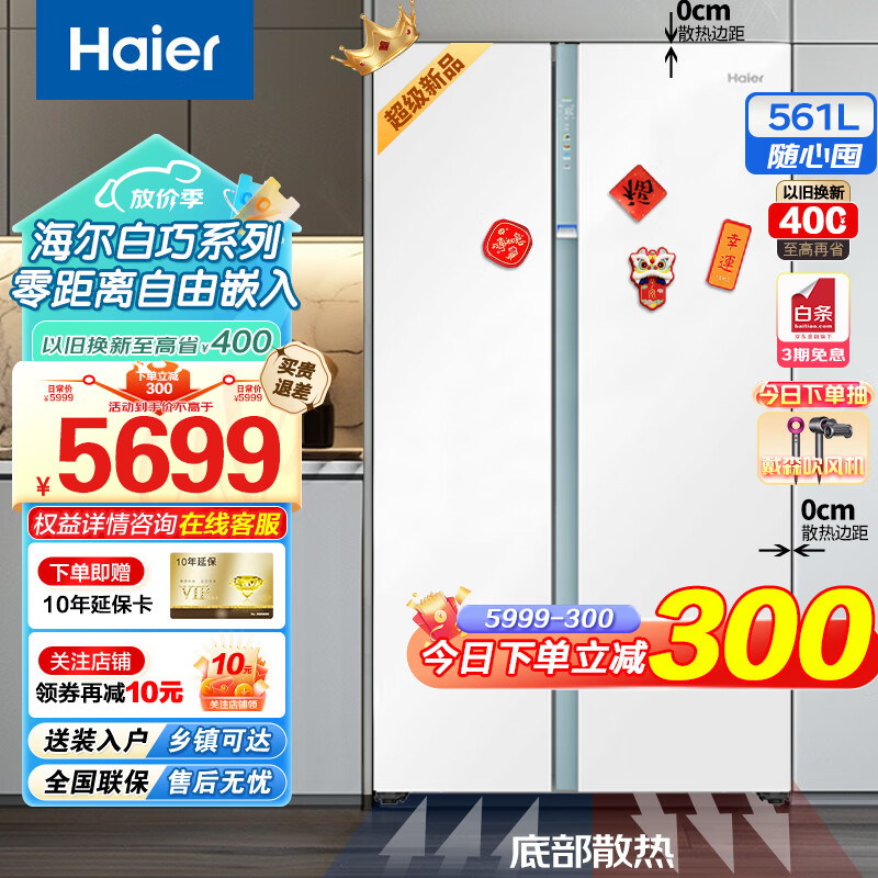 海尔(Haier)白巧系列561升零距离嵌入式冰箱对开门大容量全空间保鲜阻氧干湿分储大冷冻巨能冻冰箱价格:5999.00元!