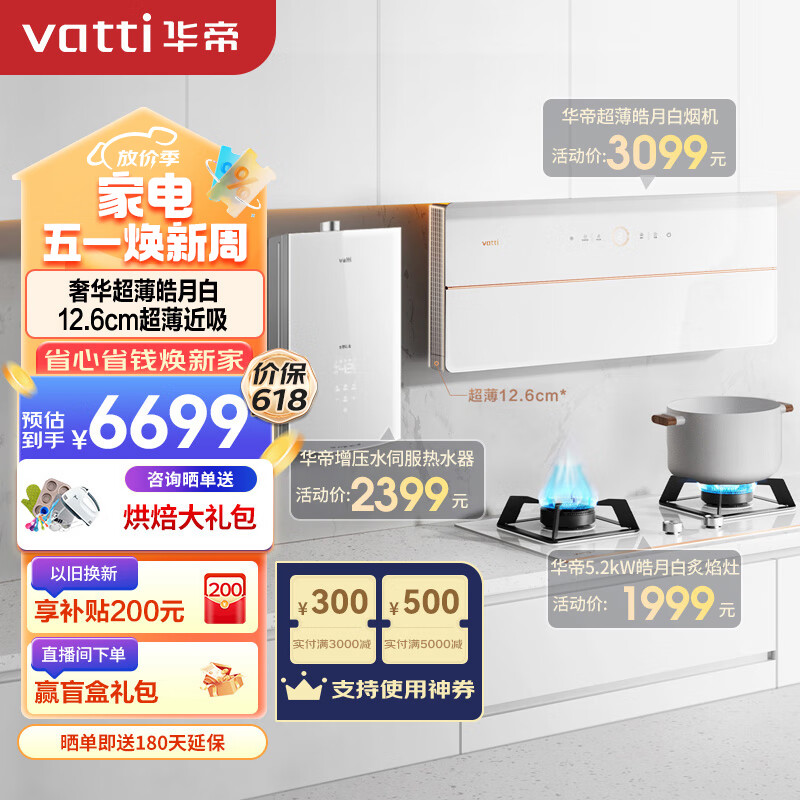 华帝(VATTI)抽油烟机艺术家X10侧吸式白色吸油烟机燃气灶具热水器套装超薄近吸i11226+91B+71S(天然气)价格:6699.00元!