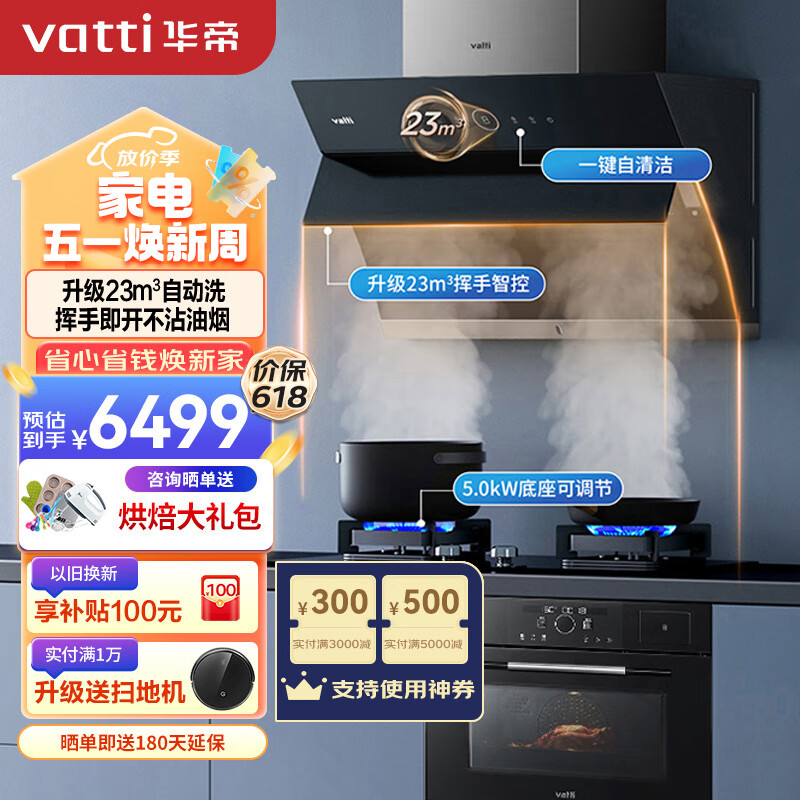 华帝(VATTI)小尺寸抽油烟机燃气灶具微蒸烤家用厨房三件套装侧吸式油烟机i11170+72B+23011(天然气)价格:6499.00元!