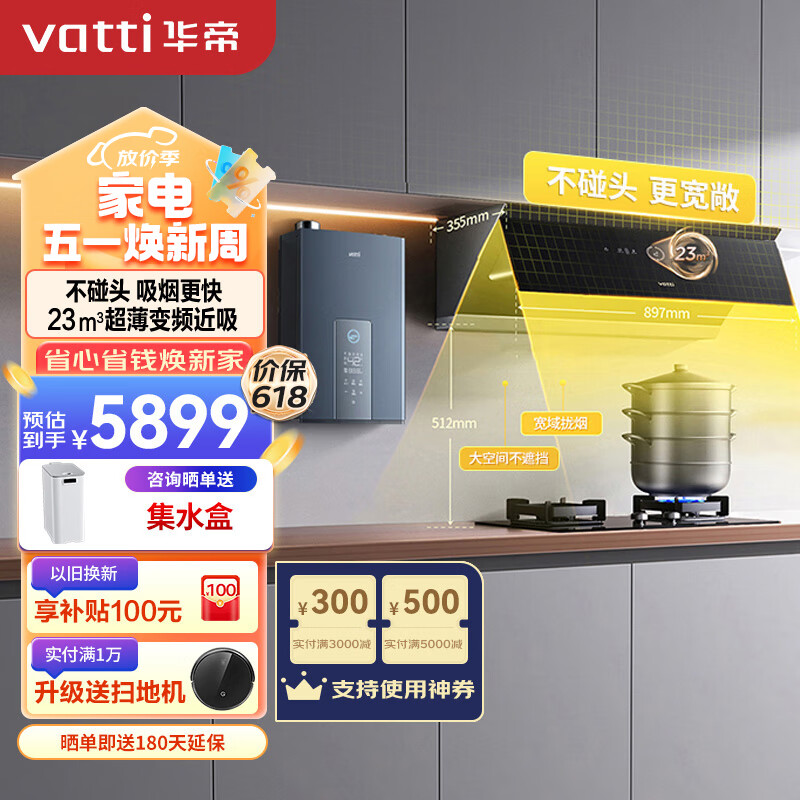 华帝(VATTI)抽油烟机家用变频大吸力多件套装23风量吸油烟机灶具热水器套装 A2·SE+72B+254-16(天然气)价格:5899.00元!