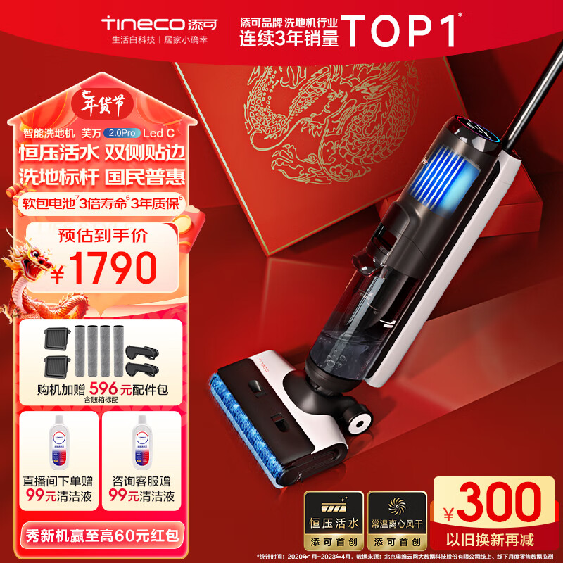 添可(TINECO)无线智能洗地机芙万2.0ProLED C家用扫地机吸拖一体手持吸尘洗地机价格:1990.00元!