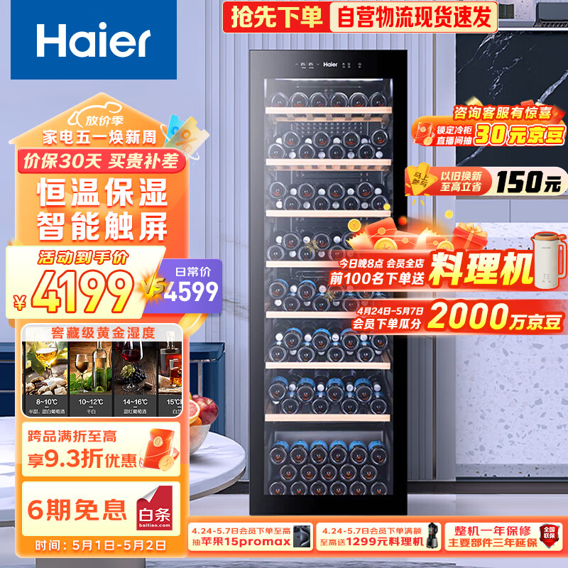 海尔(Haier)360升171瓶装家用恒温红酒柜 客厅办公室葡萄酒冷藏酒柜WS171 以旧换新价格:4699.00元!
