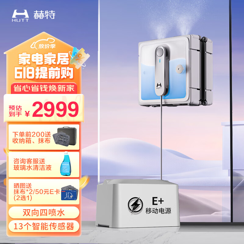 赫特W9擦窗机器人配移动电源套装版擦玻璃神器价格:2649.00元!