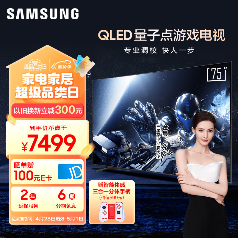 三星(SAMSUNG)75QX3C 75英寸 QLED量子点 专业游戏电视 无开机广告 超薄4K 120Hz HDMI2.1 QA75QX3CAJXXZ价格:7499.00元!