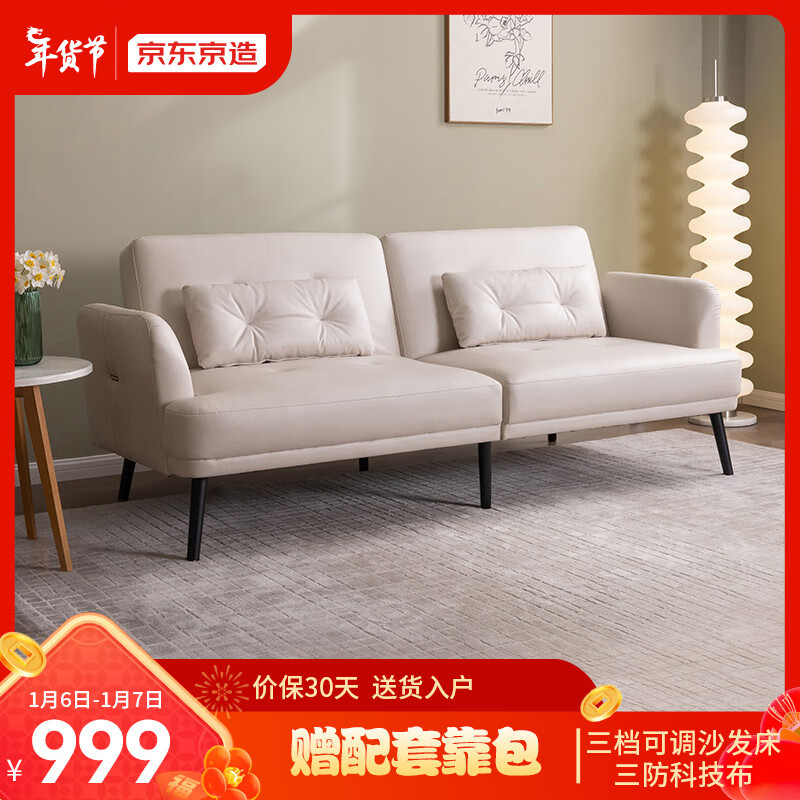 京东京造布艺沙发床 伸缩两用三防科技布靠背可调 客厅小户型 高脚款SC02价格:1199.00元!