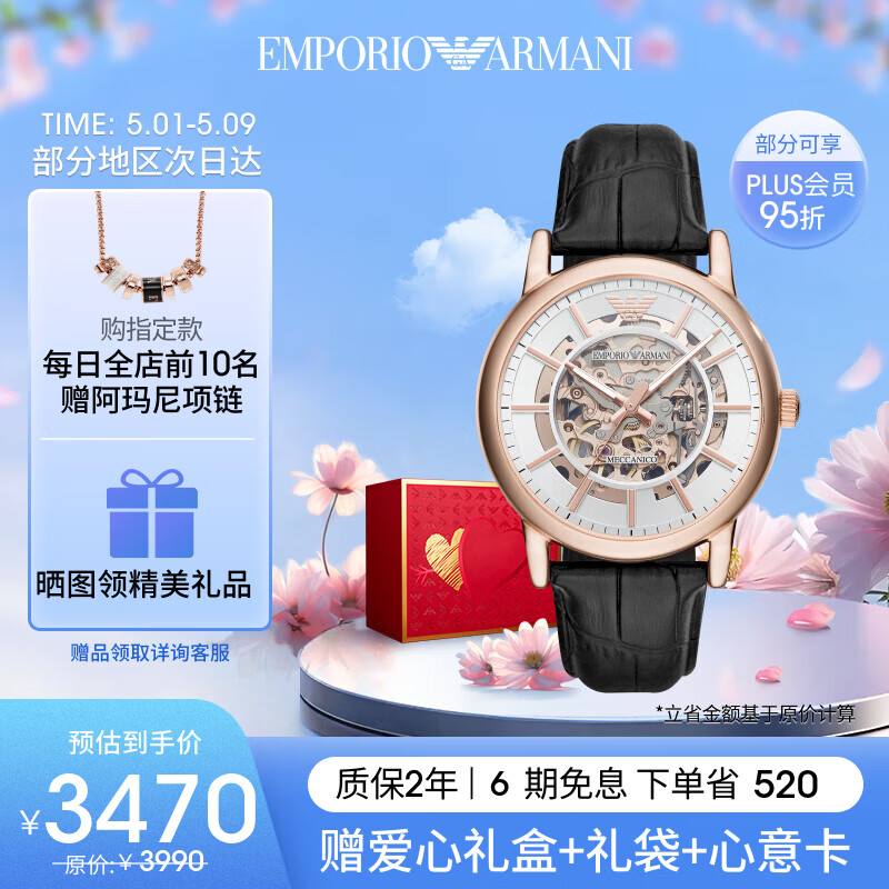 安普里奥·阿玛尼(Emporio Armani)手表男士经典欧美表皮带时尚镂空机械表生日礼物送男朋友AR60007价格:3770.00元!