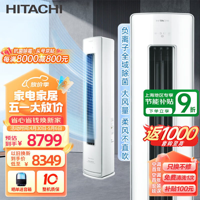 日立(HITACHI)白熊君新1级能效3匹圆柱式变频柜机客厅立式空调自动除湿防霉负离子除菌 以旧换新RAF/C-GH30PHAPC价格:9599.00元!