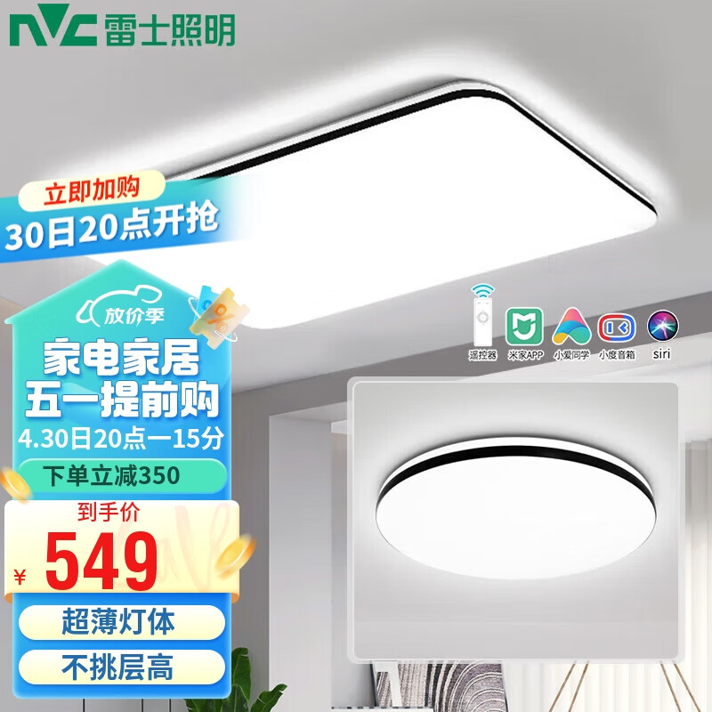 雷士照明(NVC)吸顶灯客厅大灯卧室餐厅灯具全屋套餐智能一室一厅B主灯智能价格:899.00元!
