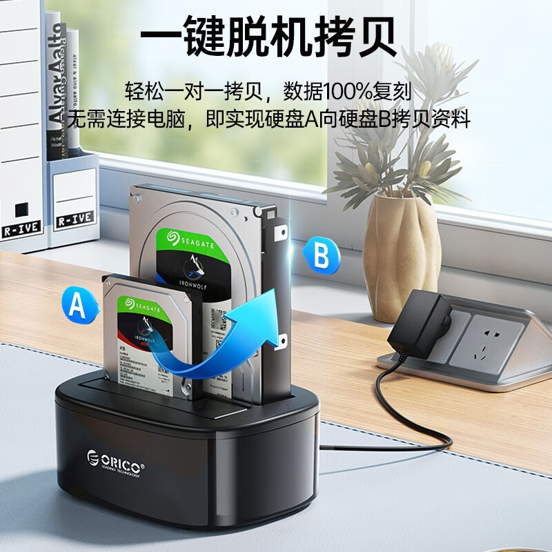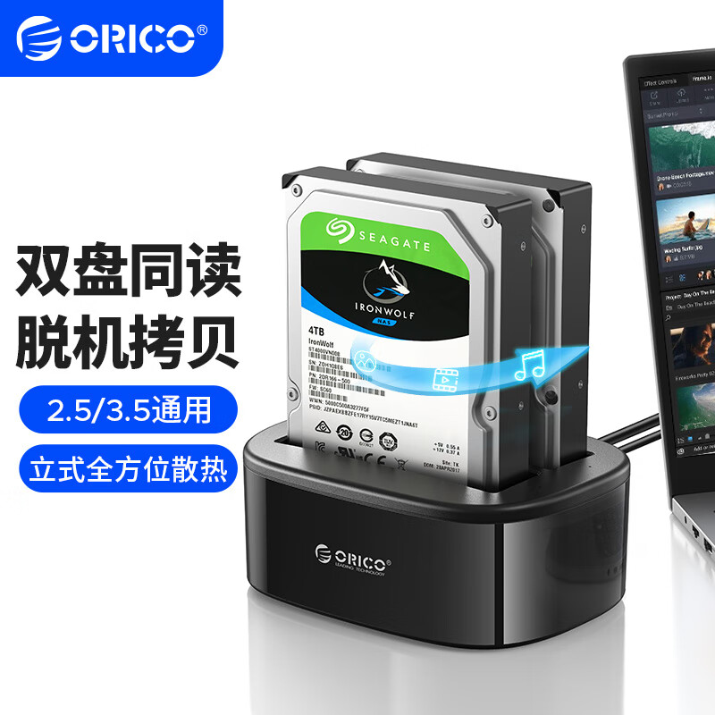 奥睿科(ORICO)硬盘盒底座3.5/2.5英寸SATA台式固态机械SSD外置外接移动脱机对拷机备份盒子双盘位6228US3-C价格:145.00元!