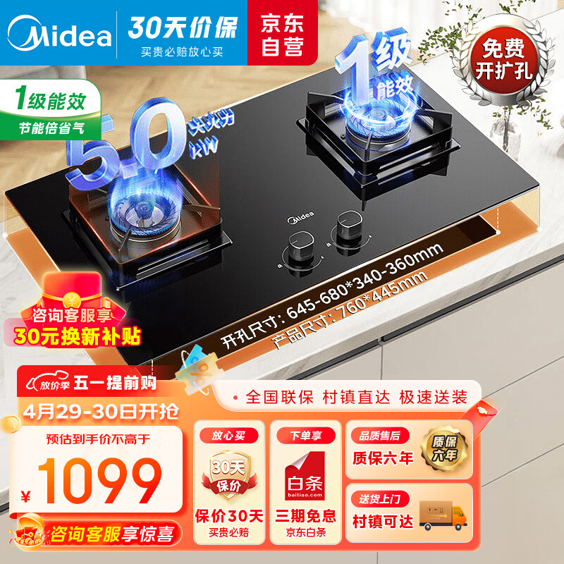 美的(Midea)燃气灶 大火力家用灶具 5.0kW猛火大火灶台嵌两用 JZY-Q523L-M液化气价格:1099.00元!