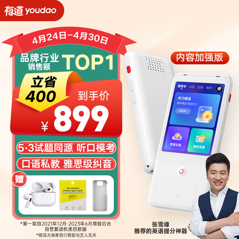 有道英语听力宝内容加强版 复读机英语学习机随身听学英语神器 听力训练小学初中高中学生听力机128G价格:899.00元!