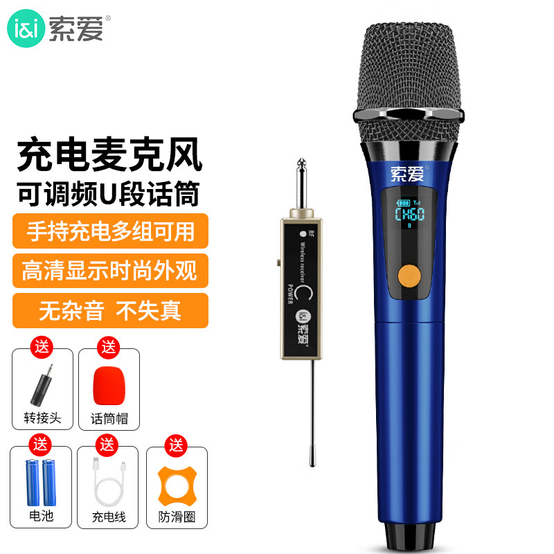 索爱(soaiy)充电无线麦克风家庭KTV唱歌舞台主持演讲K歌会议音箱音响功放一拖一金属话筒 随机发货价格:199.00元!