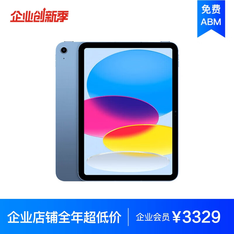 Apple iPad 10.9英寸平板电脑 2022年款(64GB WLAN版/A14芯片/1200万像素/iPadOS MPQ13CH/A)蓝色*企业专享价格:3599.00元!