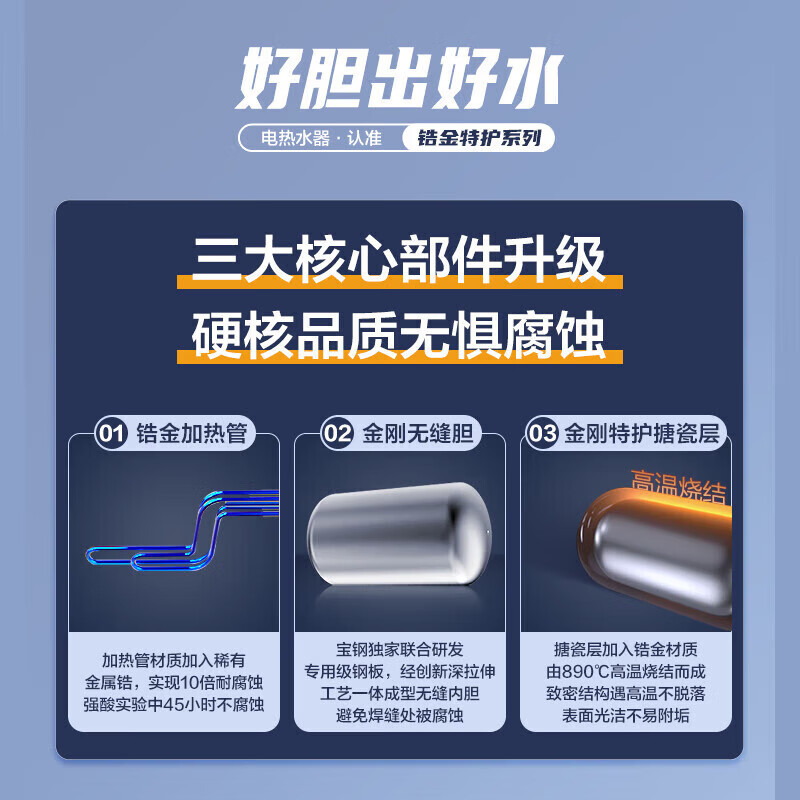 特征特质:变频加热,镁棒免更换,无缝胆