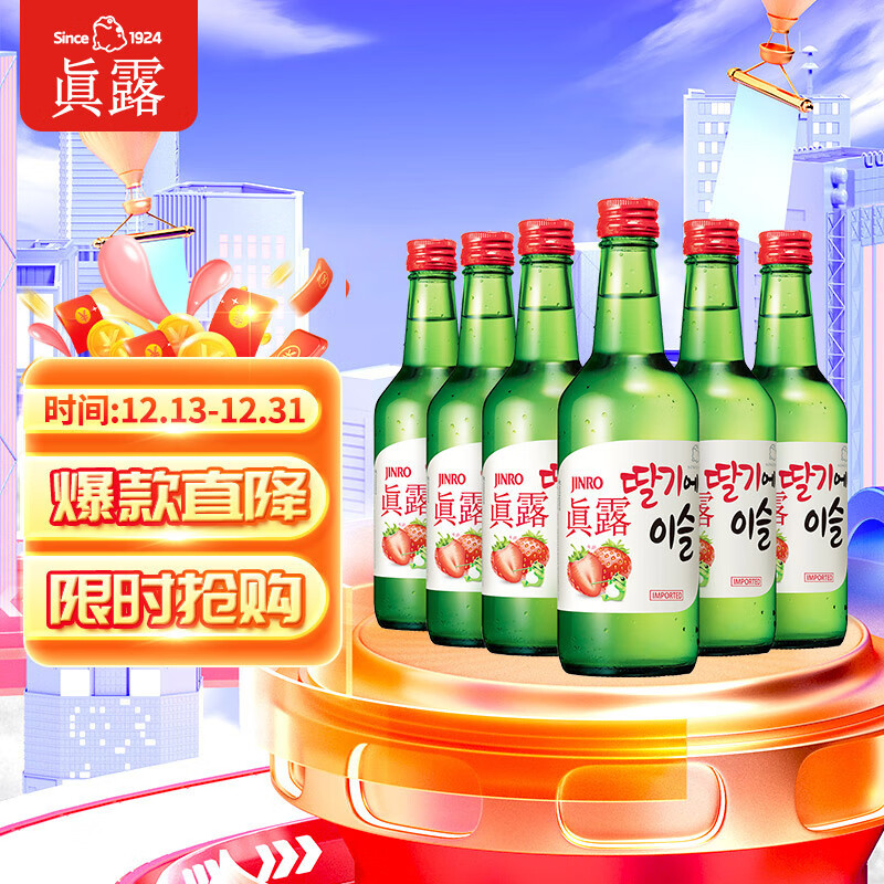 真露果味烧酒13°草莓味 360ml*6瓶装 微醺果味酒 年货送礼价格:70.00元!