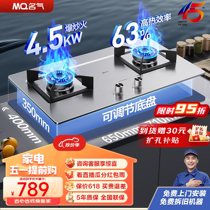 名气(MQ)老板燃气灶液化气嵌入式 家用4.5KW大火力猛火灶 煤气灶双灶 可调节底盘 不锈钢灶具 JZY-A6510G价格:789.00元!