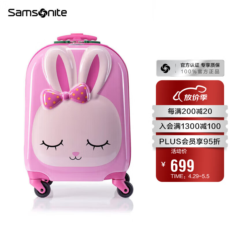 新秀丽(Samsonite)拉杆箱儿童旅行箱登机箱时尚萌趣行李箱U22*90120粉色兔子16英寸价格:699.00元!