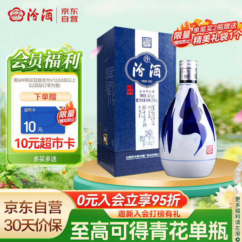 汾酒 青花20 清香型白酒 42度375ml 单瓶礼盒装 商务送礼价格:378.00元!
