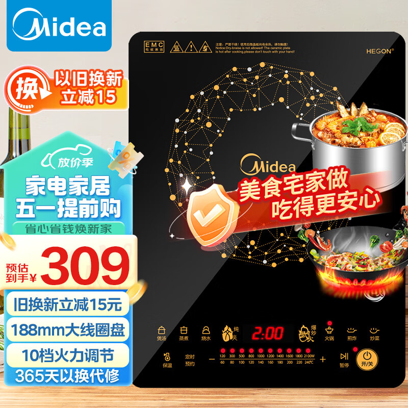 美的(Midea)电磁炉 火锅炉匀火 智能定时 十档火力 C21-WT2118(标配欧式汤锅+炒锅)价格:309.00元!