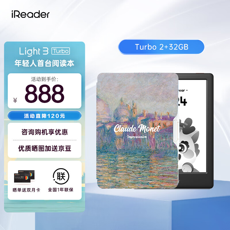 掌阅iReader Light3 Turbo智能阅读本 电子书阅读器 6英寸墨水屏电纸书 32G 沉墨 莫奈运河·翻页键套装价格:888.00元!