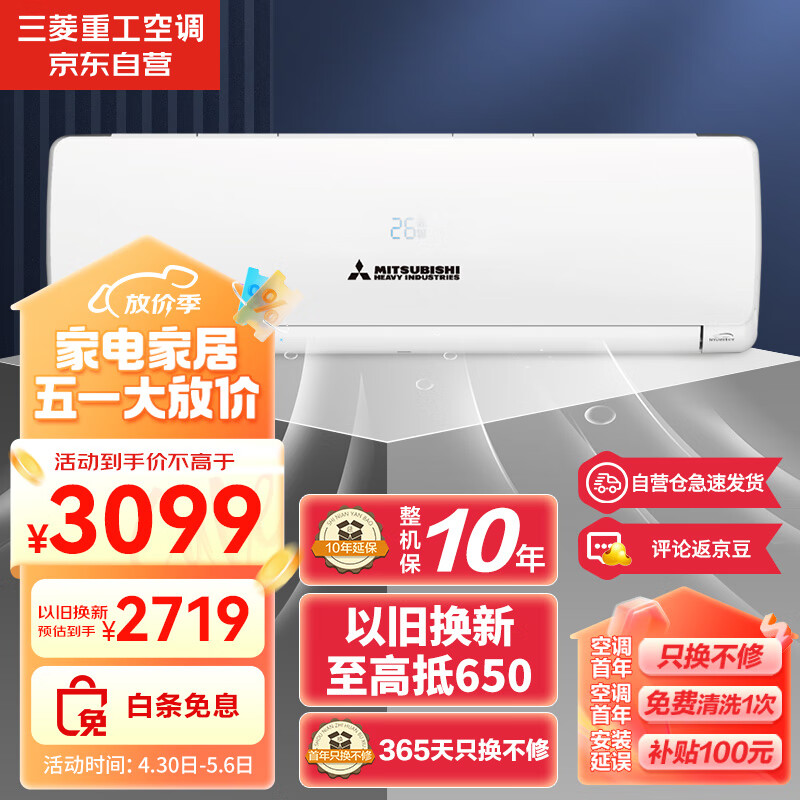 三菱重工 适用11-16㎡ 新三级能效 1匹 变频冷暖 空调挂机智能电辅热远程送风三菱空调SRKQG26以旧换新价格:3199.00元!