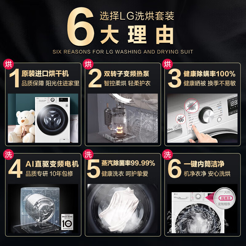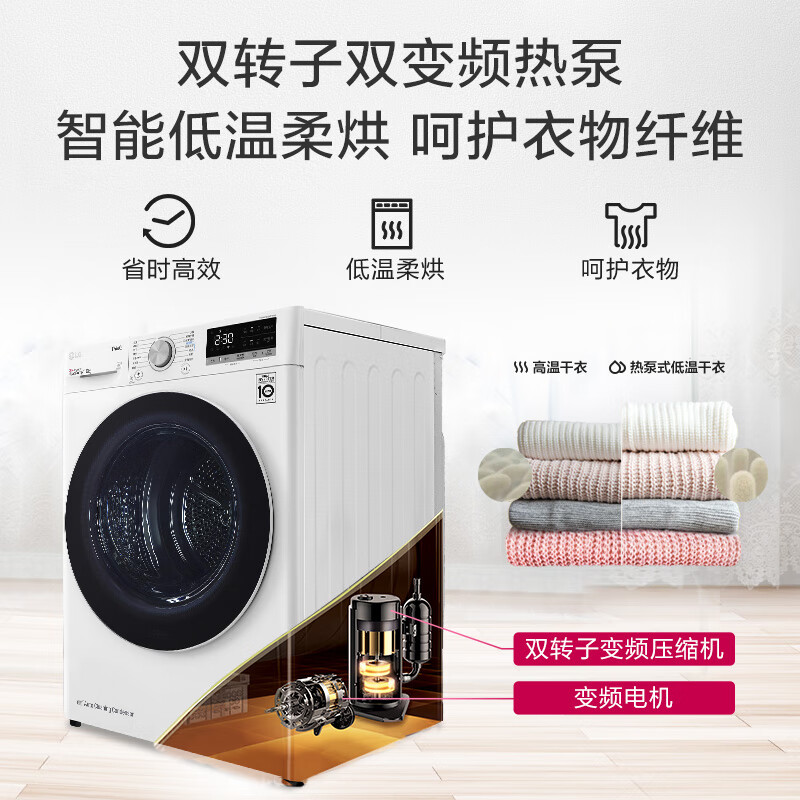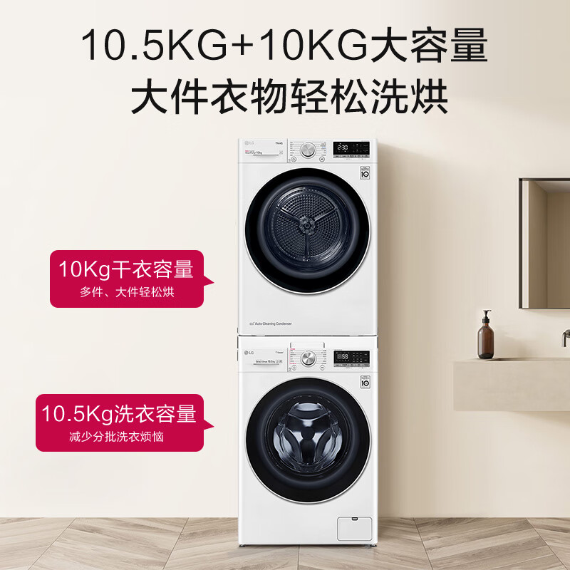 LG 洗烘套装10.5kg蒸汽除菌洗衣机+10kg双转子变频烘干机 FLW10G4W+RH10V9AV4W(附件商品仅展示)价格:11999.00元!