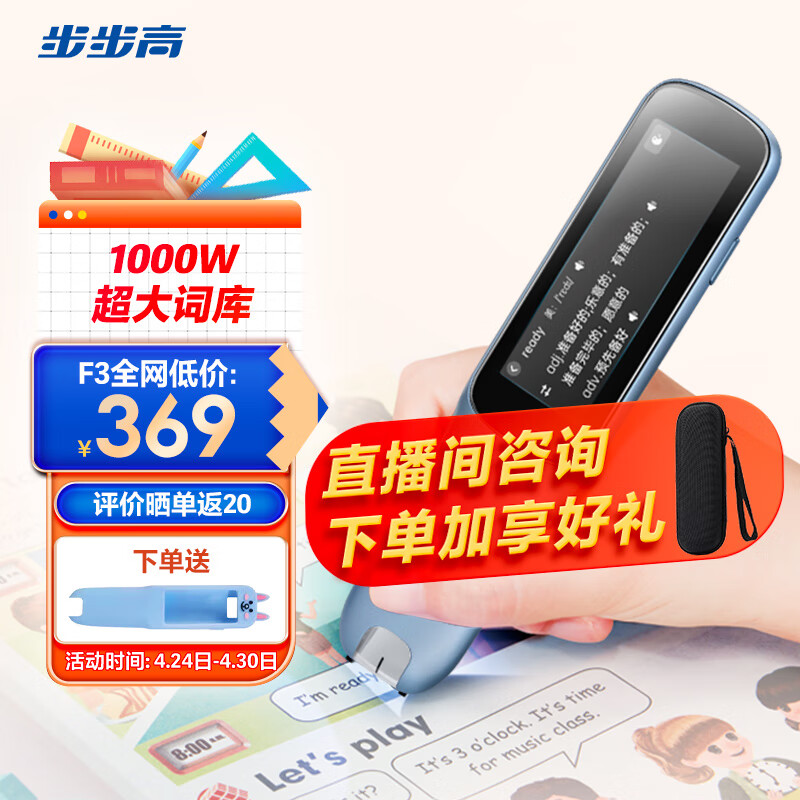 步步高词典笔F3 点读笔扫描笔翻译笔 学习机电子词典 小学生专属课本同步扫读翻译机翻译器价格:369.00元!