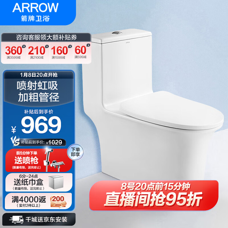 箭牌(ARROW)抽水马桶家用卫浴虹吸坐便器普通座便节水坐厕 1级水效AEB12617L价格:1239.00元!