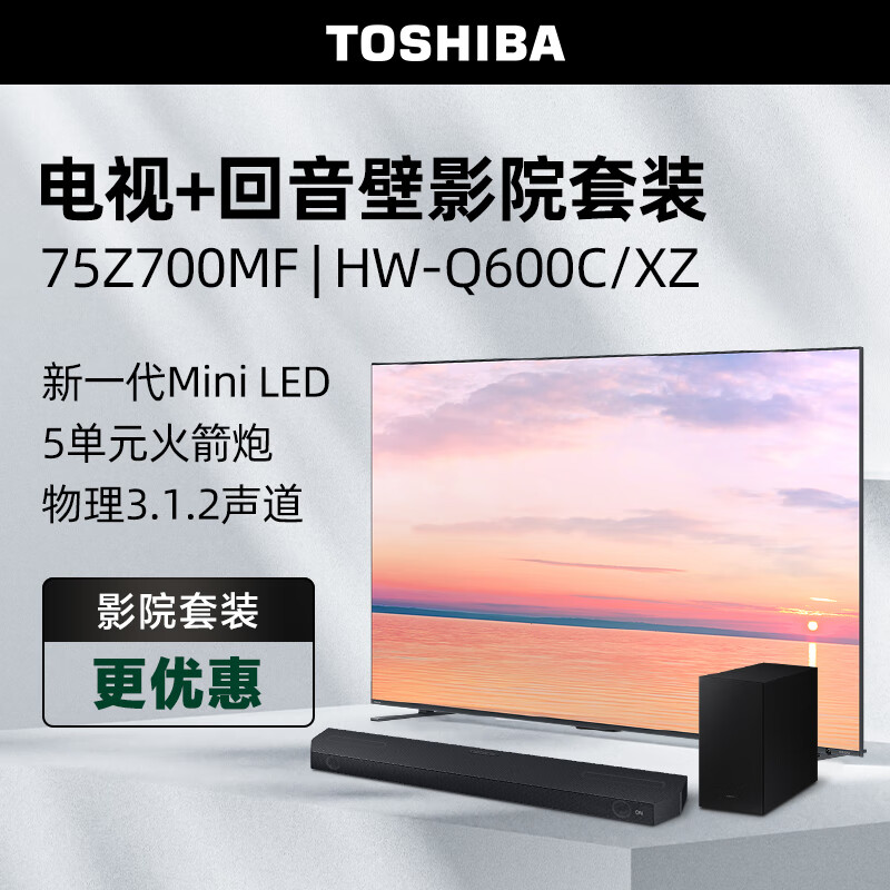 东芝电视75Z700MF+HW-Q600C/XZ沉浸追剧套装 75英寸高端Mini LED 4K144Hz高刷屏65w火箭炮电视机价格:11353.00元!