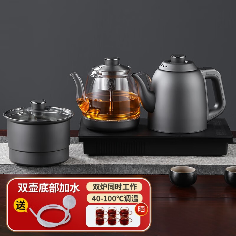 FUNORK全自动上水电热水壶泡茶烧水壶茶台茶桌茶几一体嵌入式电茶壶抽水茶具电茶炉 钛灰色三件套(长宽37*20cm)价格:699.00元!
