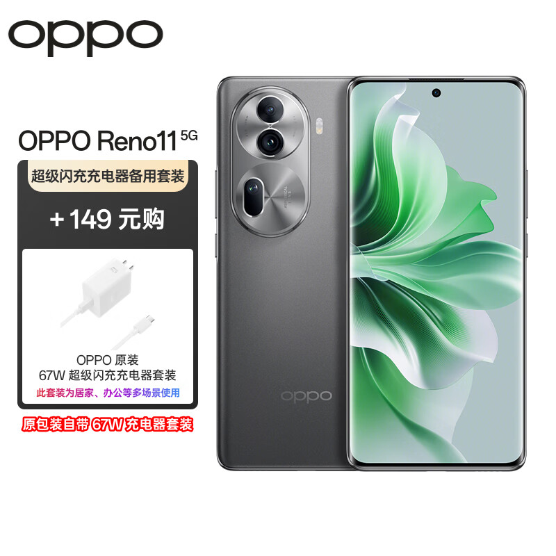 OPPO Reno11 12GB+512GB 曜石黑 单反级人像三摄 天玑8200旗舰芯 5G AI手机【67W充电器备用套装】价格:2948.00元!