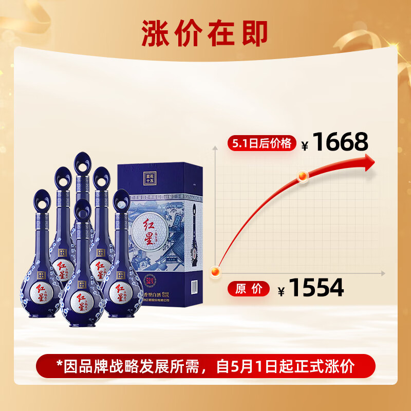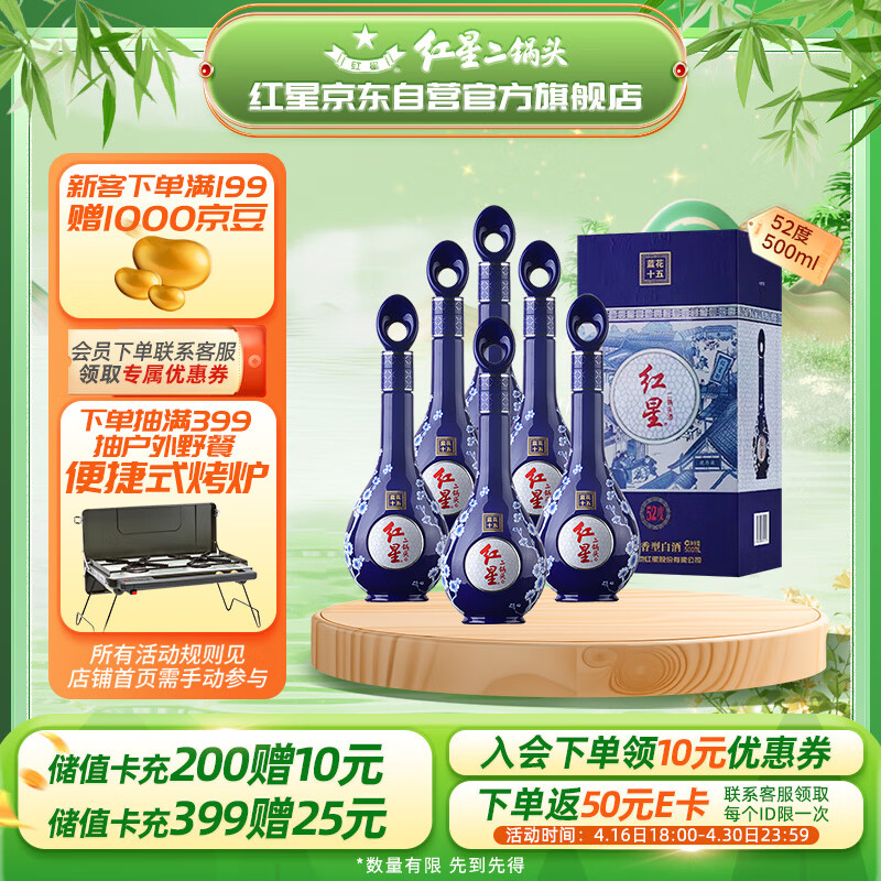 红星二锅头蓝花15 清香型白酒 52度 500ml*6瓶 整箱装价格:1554.00元!