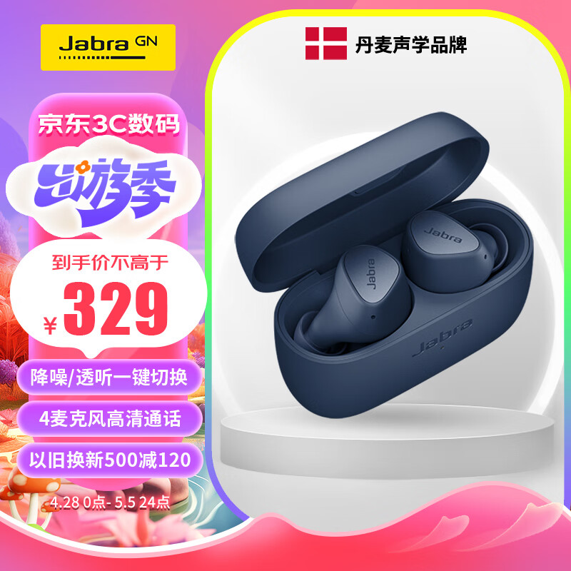 捷波朗(Jabra)Elite3 真无线蓝牙降噪耳机 蓝牙5.2 强劲续航(65t升级版E3) 安卓苹果音乐耳机 海军蓝色价格:329.00元!