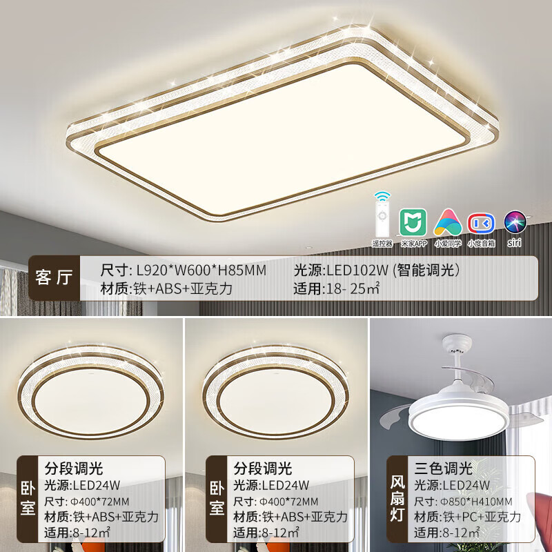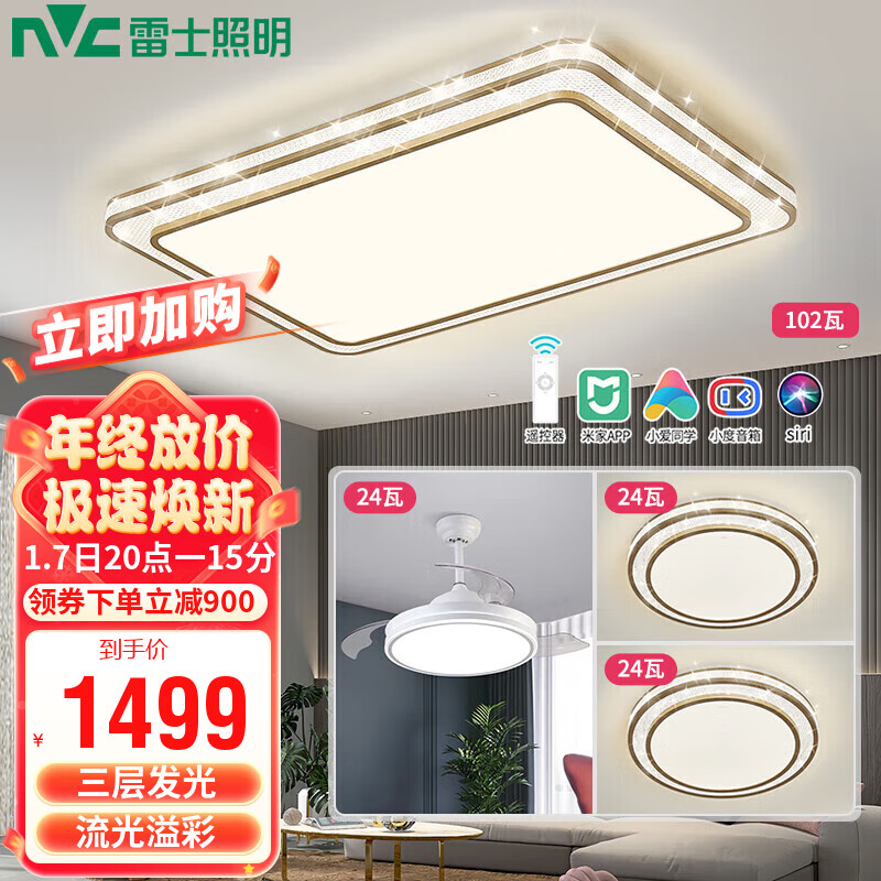 雷士照明(NVC)LED吸顶灯轻奢客厅大灯书房卧室餐厅灯具套餐仿水晶三室一厅价格:2399.00元!