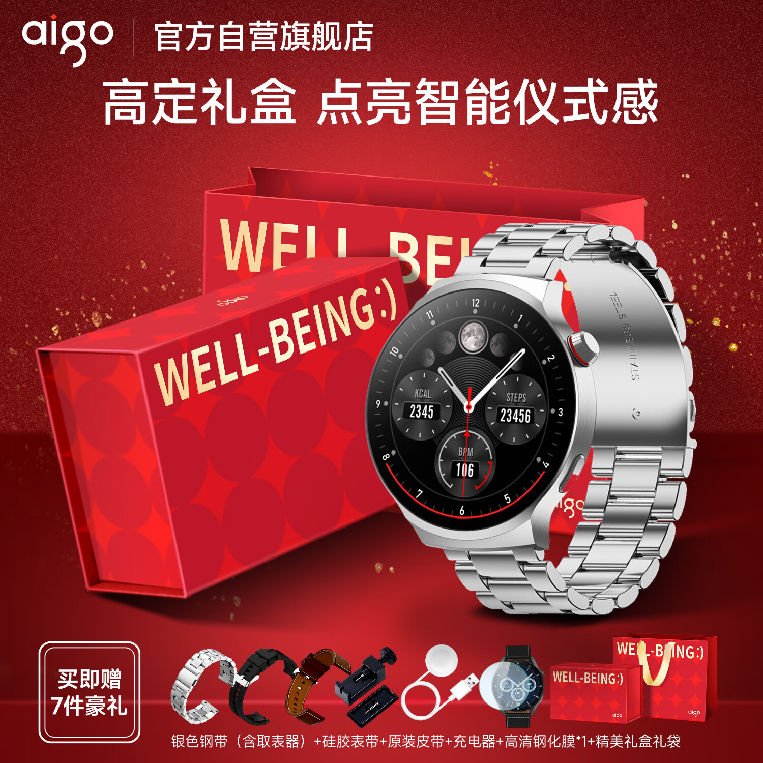 爱国者(aigo)智能手表V8男款健康监测血压心率多功能通话圆盘运动手表 银色价格:528.00元!