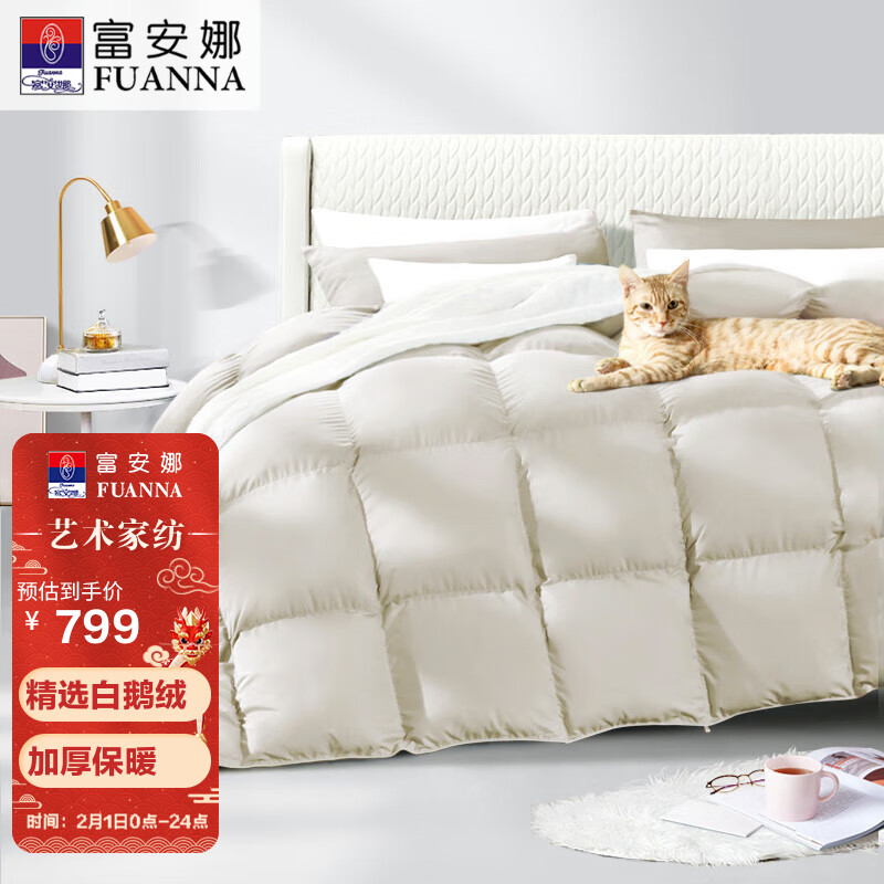 富安娜 星宇恋 50%白鹅绒羽绒被 加厚被 1500g填充 230*229cm 奶油灰价格:1399.00元!