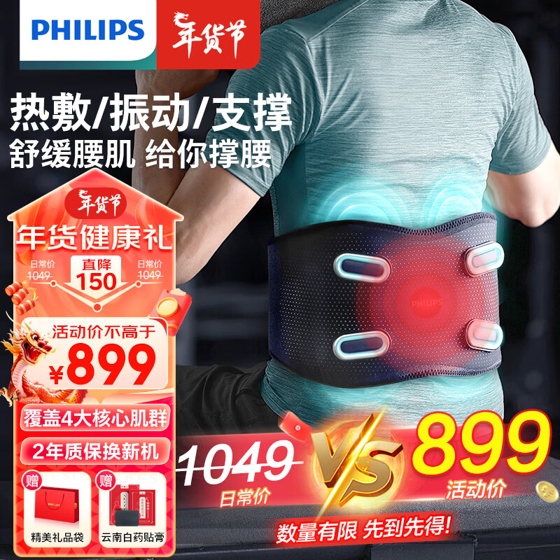 飞利浦(PHILIPS)腰部按摩器 冷敷热敷腰部按摩仪振动按摩缓解酸累物理支撑护腰带 年会礼品生日礼物 7201B价格:1049.00元!