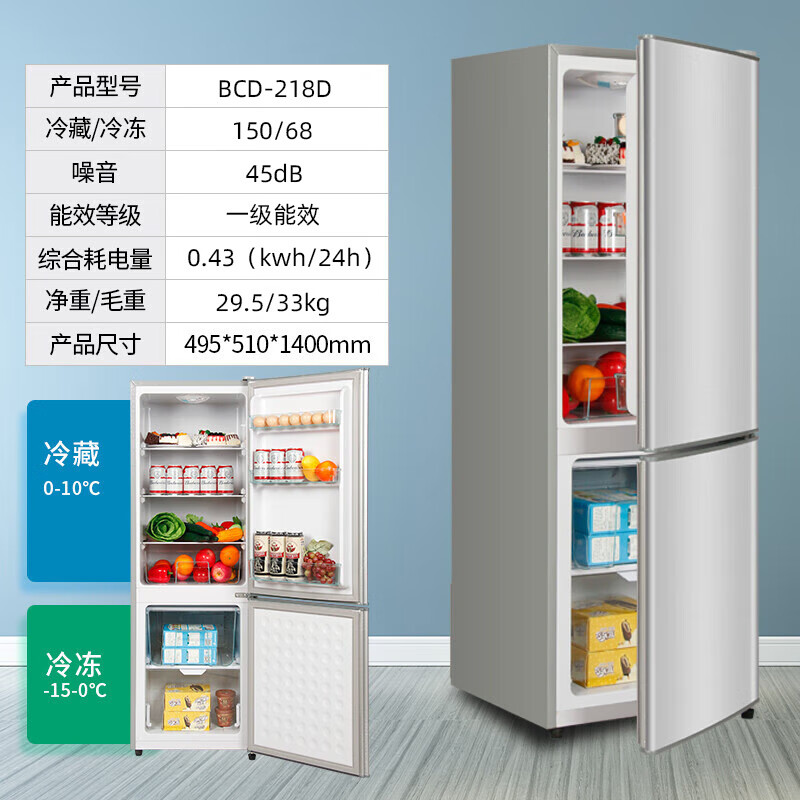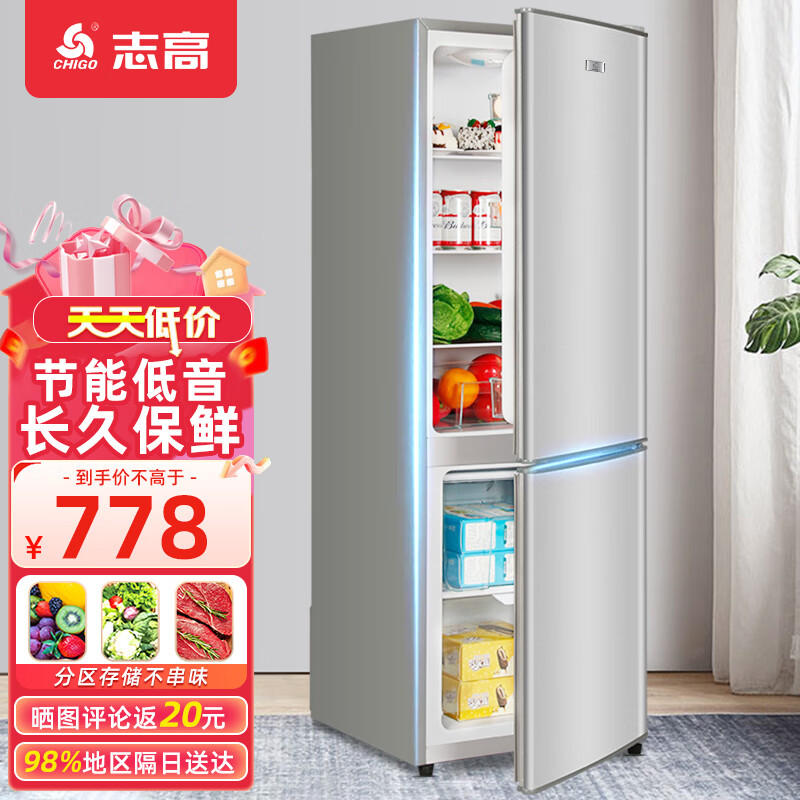 志高(CHIGO)双门冰箱家用小型出租房宿舍双开门冷藏冷冻一级能效大容量办公室电冰箱二门 BCD-218D 银色价格:808.00元!