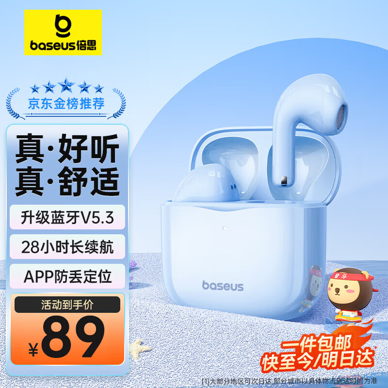 倍思E3 真无线蓝牙耳机半入耳式游戏吃鸡低延迟音乐降噪适用于苹果华为小米oppo 蓝色价格:109.00元!