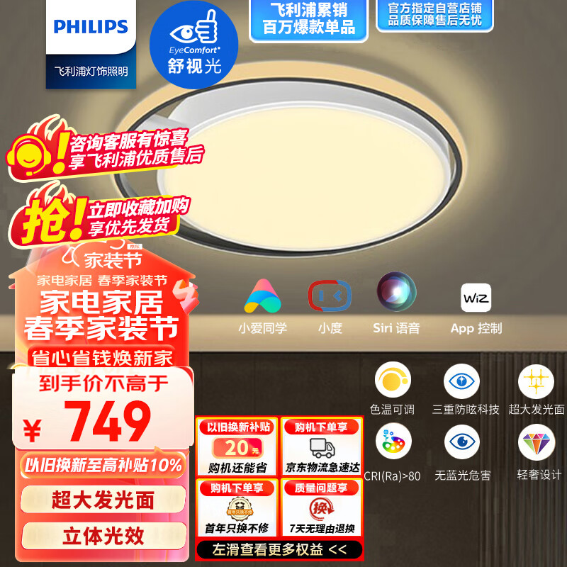 飞利浦(PHILIPS)led客厅灯卧室灯智能Wi-Fi 悦璃异型吸顶灯40W 9290032520价格:1149.00元!
